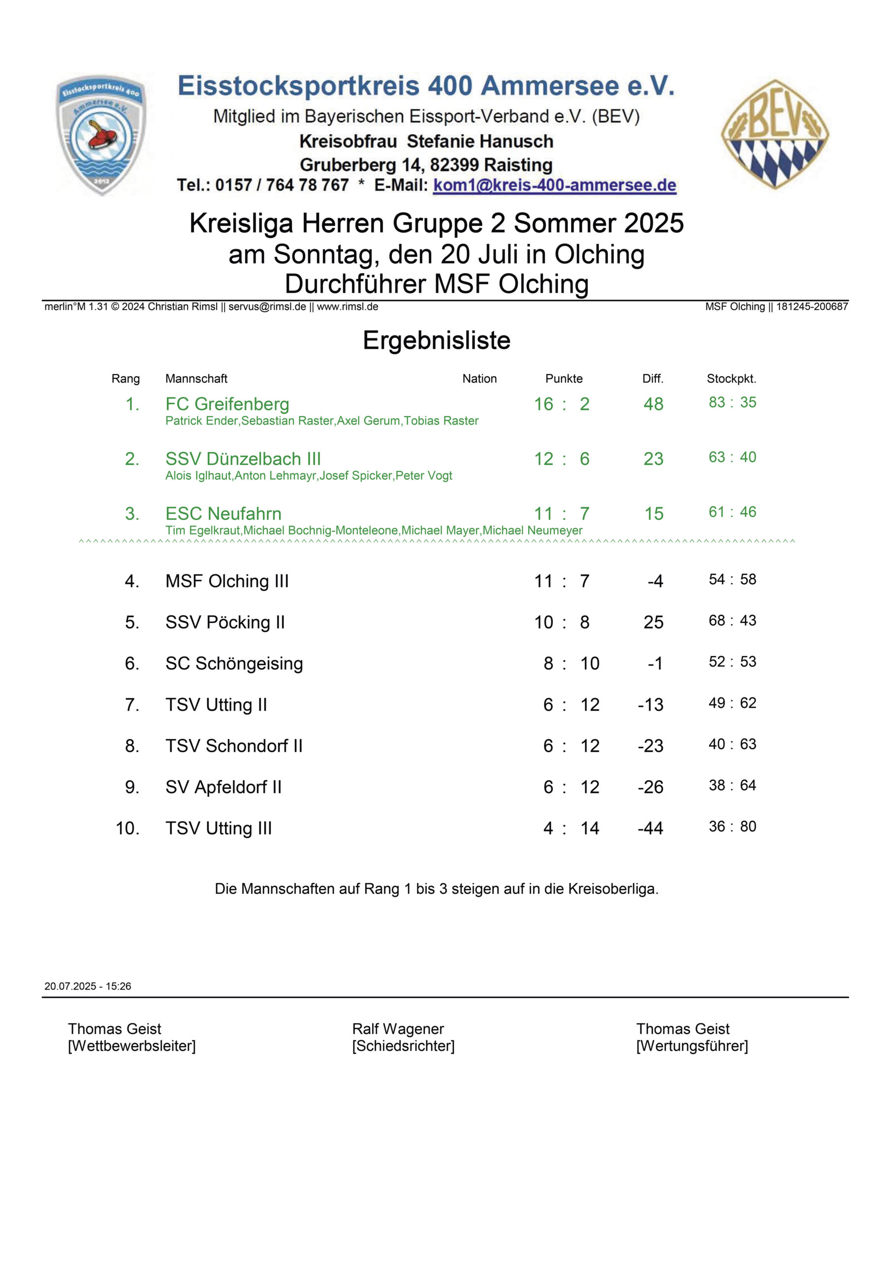 Kreisliga Herren – Sommer 2025